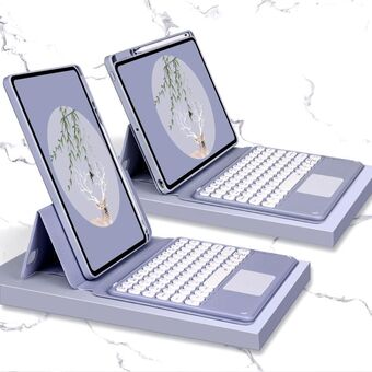 Θήκη δερμάτινου πληκτρολογίου Bluetooth με αποσπώμενο φωτισμό για iPad 10.2 2020 & 2019 / Pro 10.5 ίντσες / Air 3 10.5 ίντσες (βαθμιδωτό μωβ) με τριγωνική βάση στήριξης & υποδοχή για στυλό.