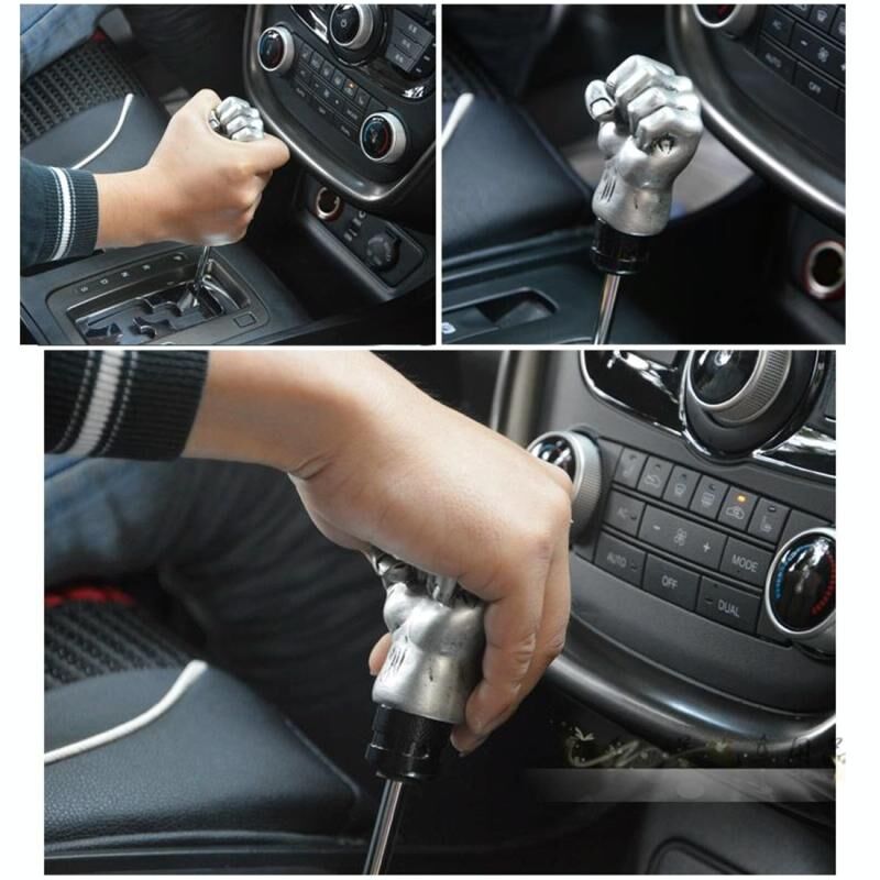 Universal Fist Shape Aluminum Manual or Automatic Gear Shift Knob Compatible with Three Rubber Covers Fit for All Car