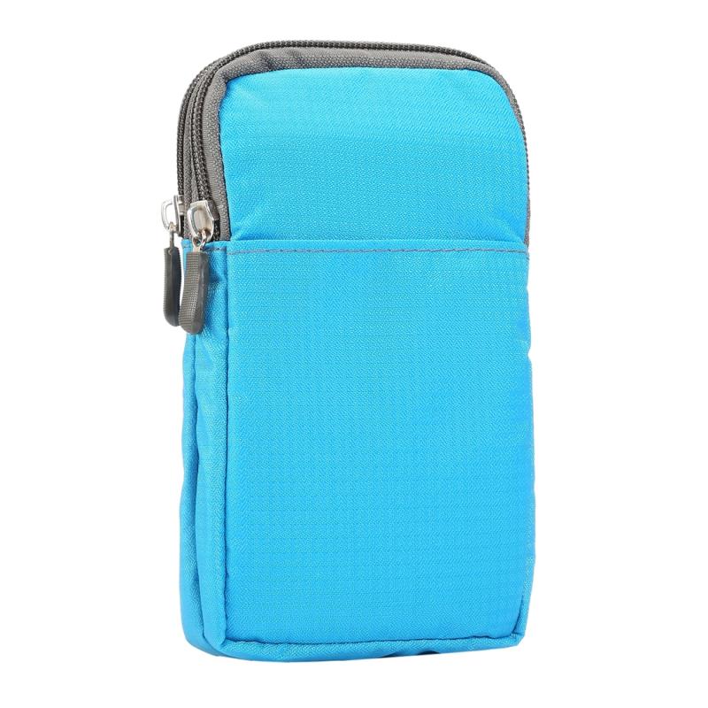 Universal Multi-function Plaid Texture Double Layer Zipper Sports Waist Bag / Shoulder Bag for iPhone X & 7 & 7 Plus / Galaxy S9+ / S8+ / Note 8 / Sony Xperia Z5 / Huawei Mate 8, Size: 16.5 x 9.0 x 3.0cm(Blue)