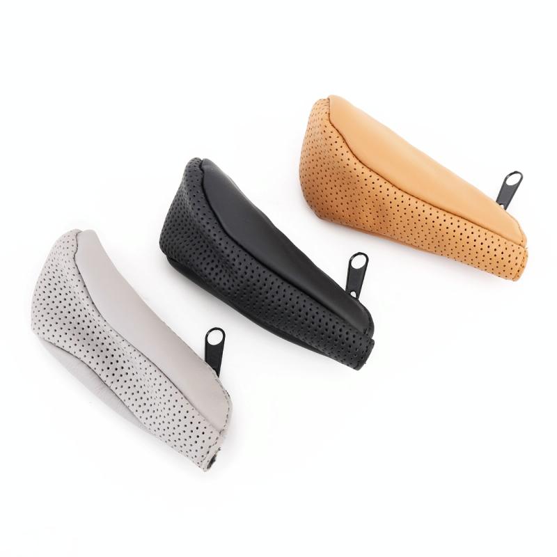 Universal Nonslip Breathable Genuine Leather Car Gear Shift Knob Cover(Grey)