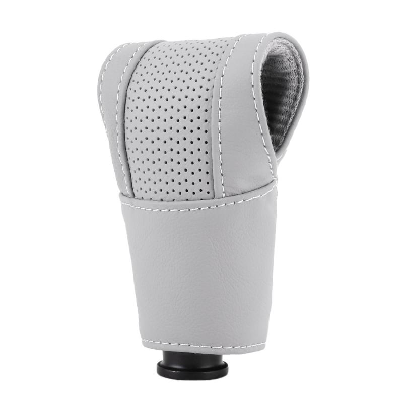 Universal Nonslip Breathable Genuine Leather Car Gear Shift Knob Cover(Grey)