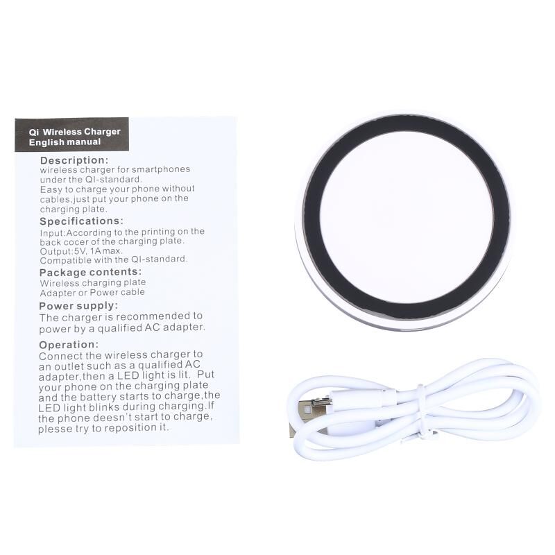 Πλατφόρμα Ασύρματης Φόρτισης QI, Καθολική, Στρογγυλή (Λευκό + Μαύρο)