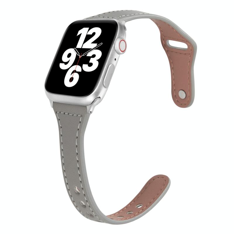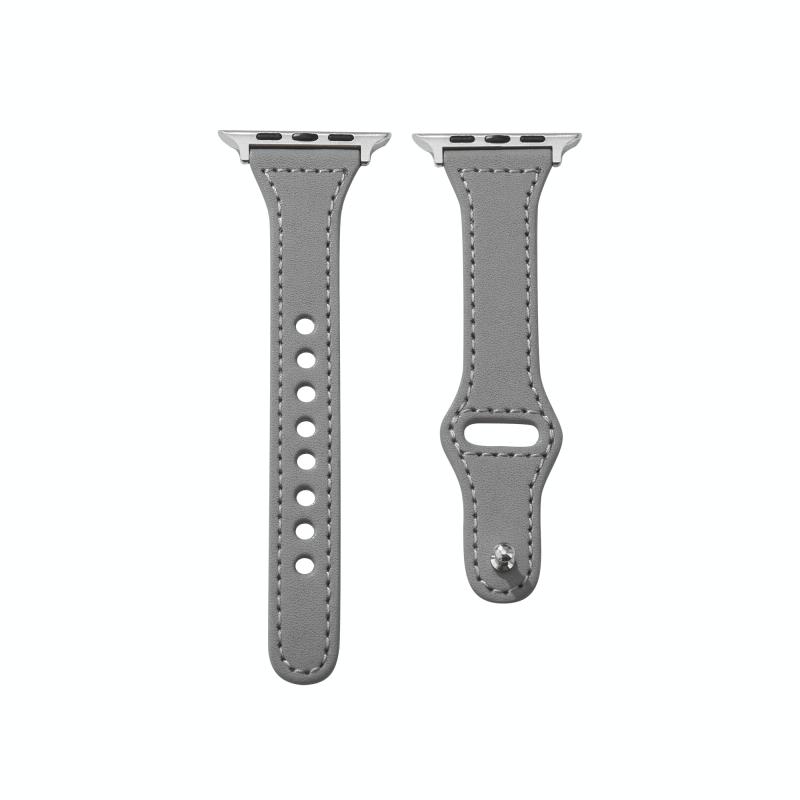 Universal T-shaped Thin Reverse Buckle Leather Watch Band For Apple Watch Ultra 49mm&Watch Ultra 2 49mm / Series 9&8&7 45mm / SE 3&SE 2&6&SE&5&4 44mm / 3&2&1 42mm(Grey)