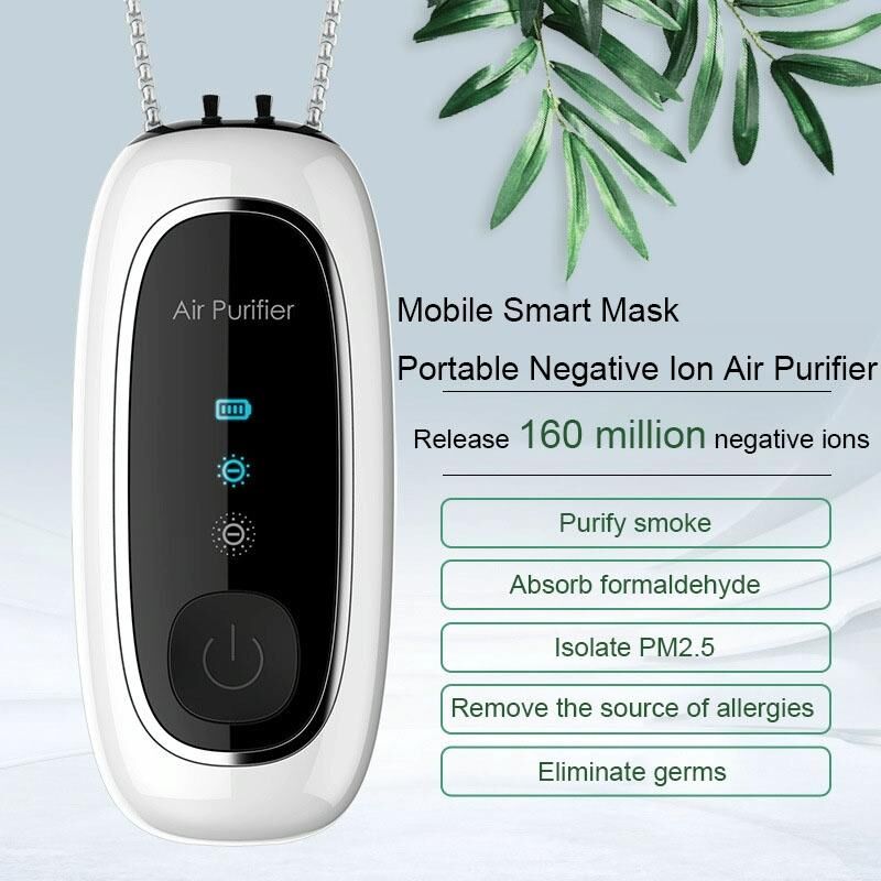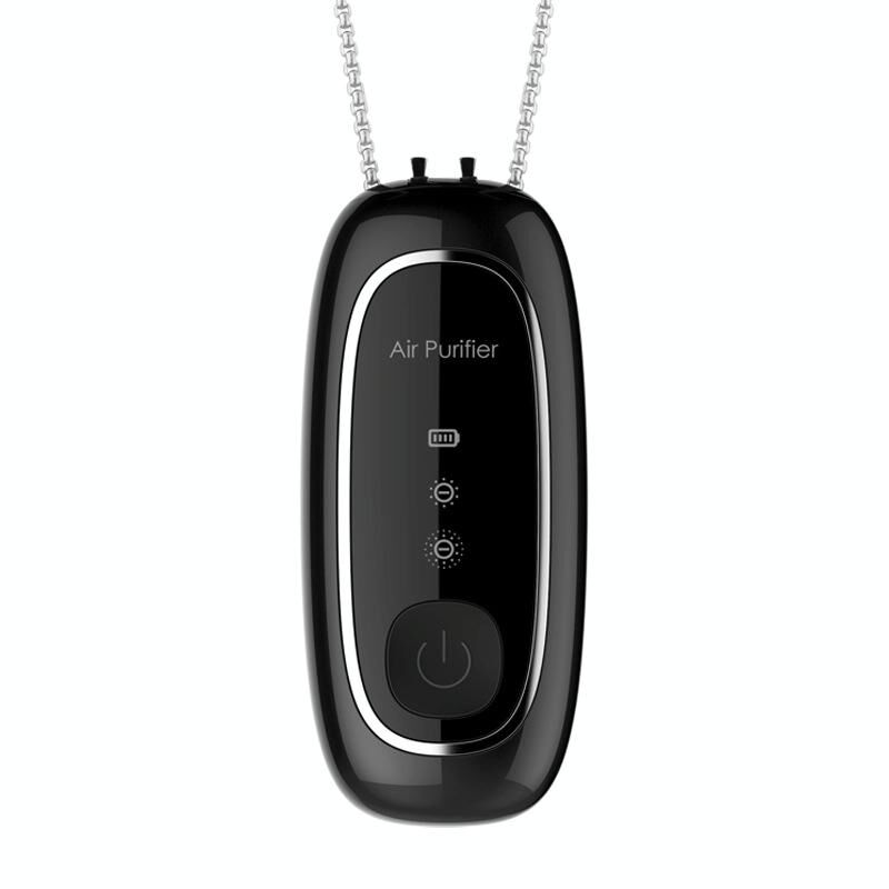 Upgrade Dual-brush Negative Ion Air Purifier Neck Small Portable Air Purifier, Style: Chain Model (Black)