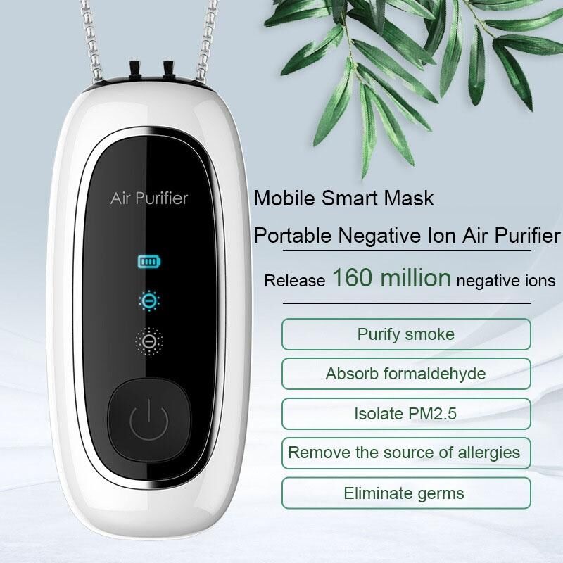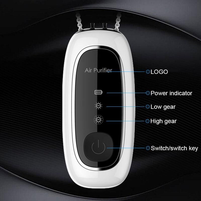 Upgrade Dual-brush Negative Ion Air Purifier Neck Small Portable Air Purifier, Style: Rope Model (Black)