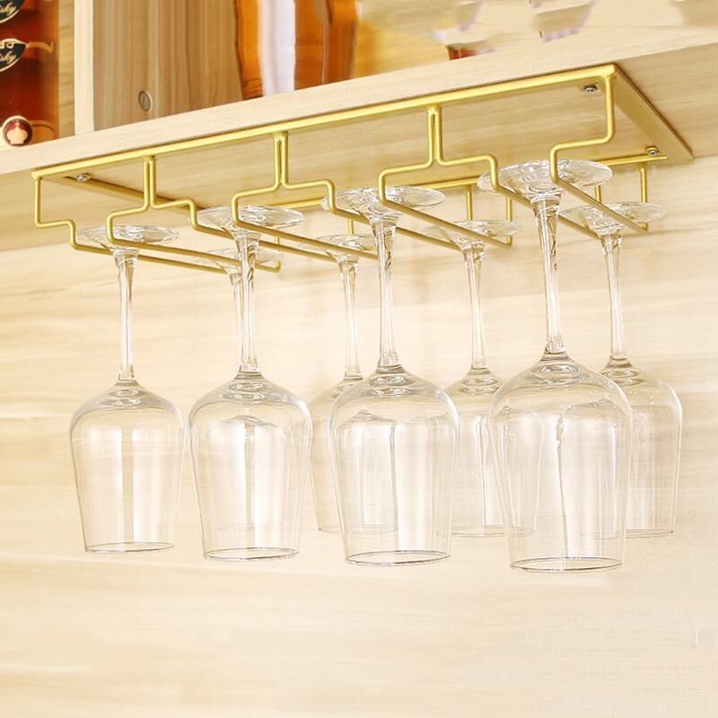 Upside Down Hanging Wine Cup Holder Cabinet Goblet Bracket Hanging Wine Glass Holder, Size: 4 Slots(Gold)