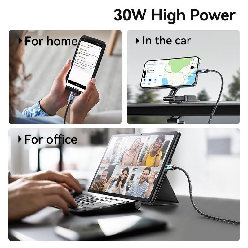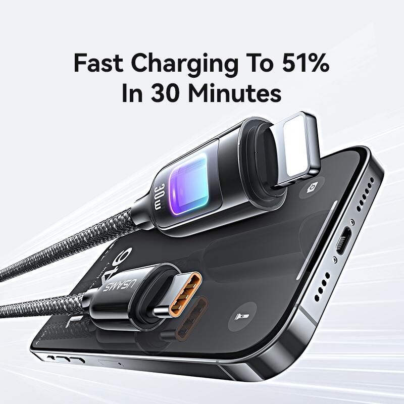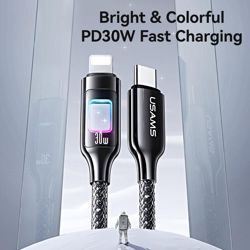 Καλώδιο δεδομένων USAMS SJ749 30W Type-C / USB-C σε 8 ακίδες από κράμα ψευδαργύρου με πολύχρωμο φως, Μήκος: 1,2μ (Πατίνα) (USAMS)