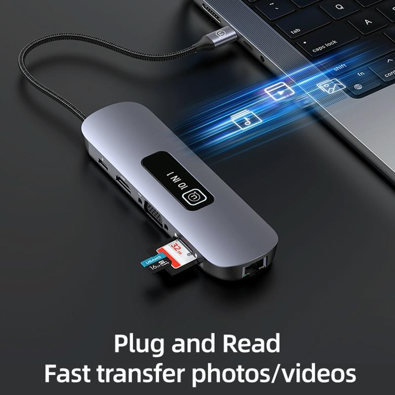 1. 10 interfaces: USB3.0x3, SD card slot x1, TF card slot x1, Type-Cx1, HDMIx1, RJ45x1, VGAx1