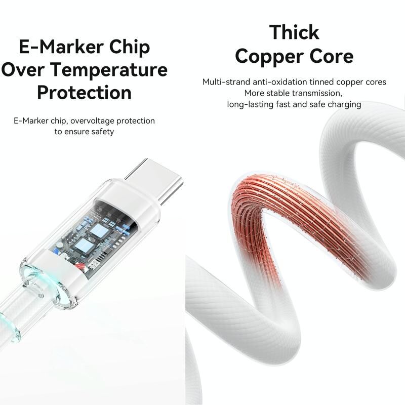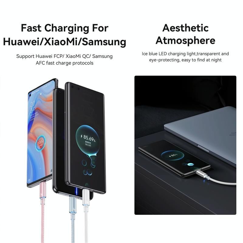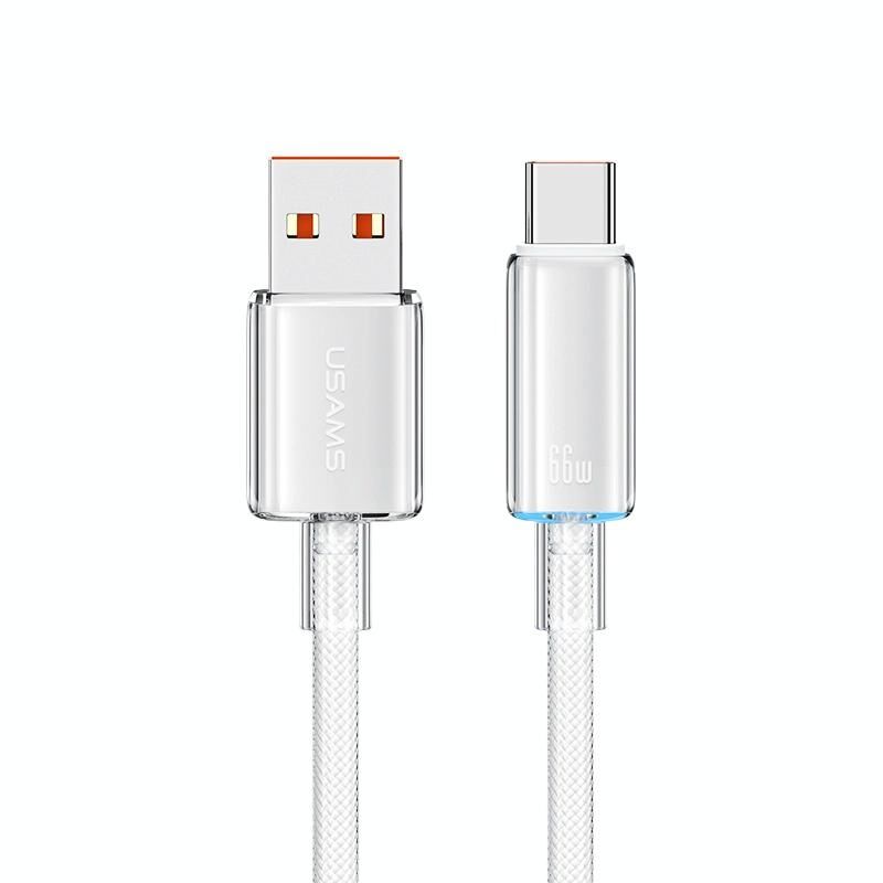 USAMS USB To Type-C 6A Aluminum Alloy Clear LED Fast Charge Data Cable, Length: 1.2m(White) (USAMS)