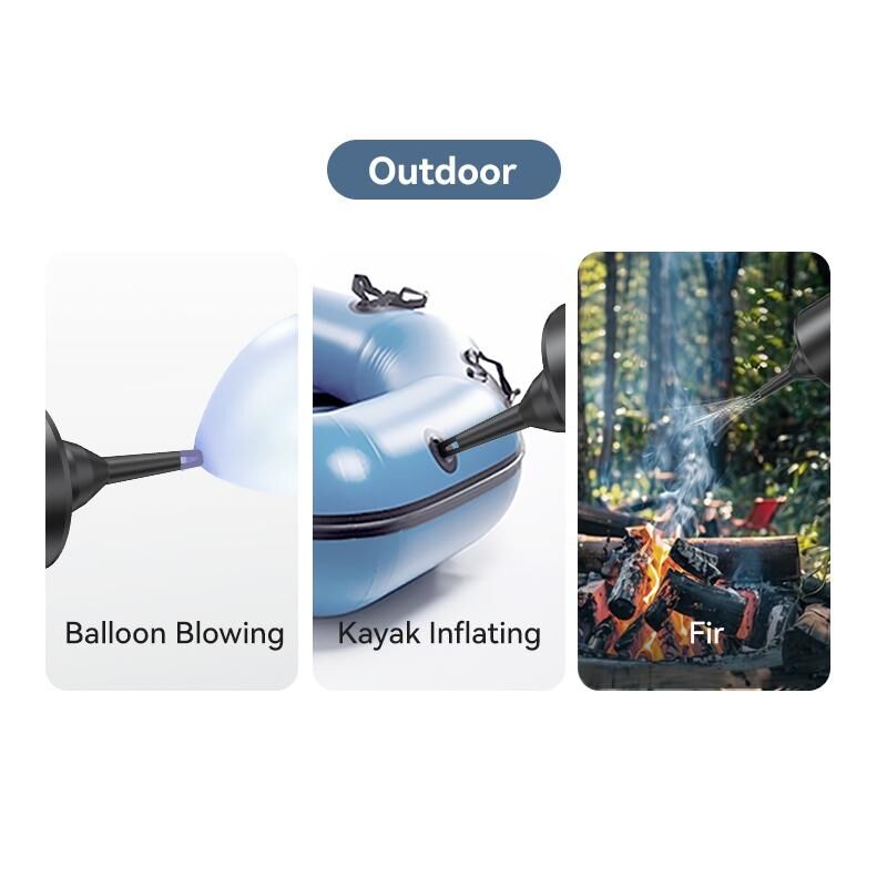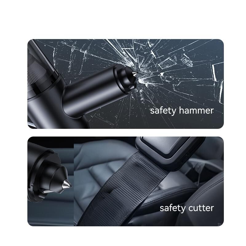 4. 6 σε 1 λειτουργίες: αναρρόφηση σκόνης, φύσημα αέρα, αναρρόφηση με ηλεκτρική σκούπα, φούσκωμα, σπάσιμο παραθύρου έκτακτης ανάγκης και κόφτης ασφαλείας