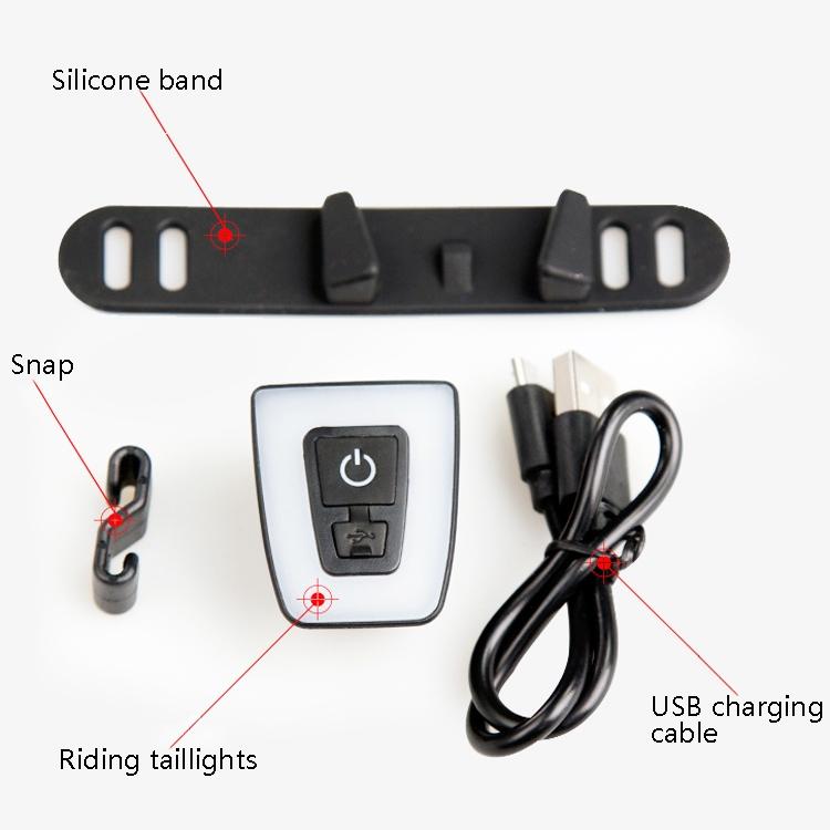 6. Packing list: tail light, silicone strap, buckle, USB charging cable