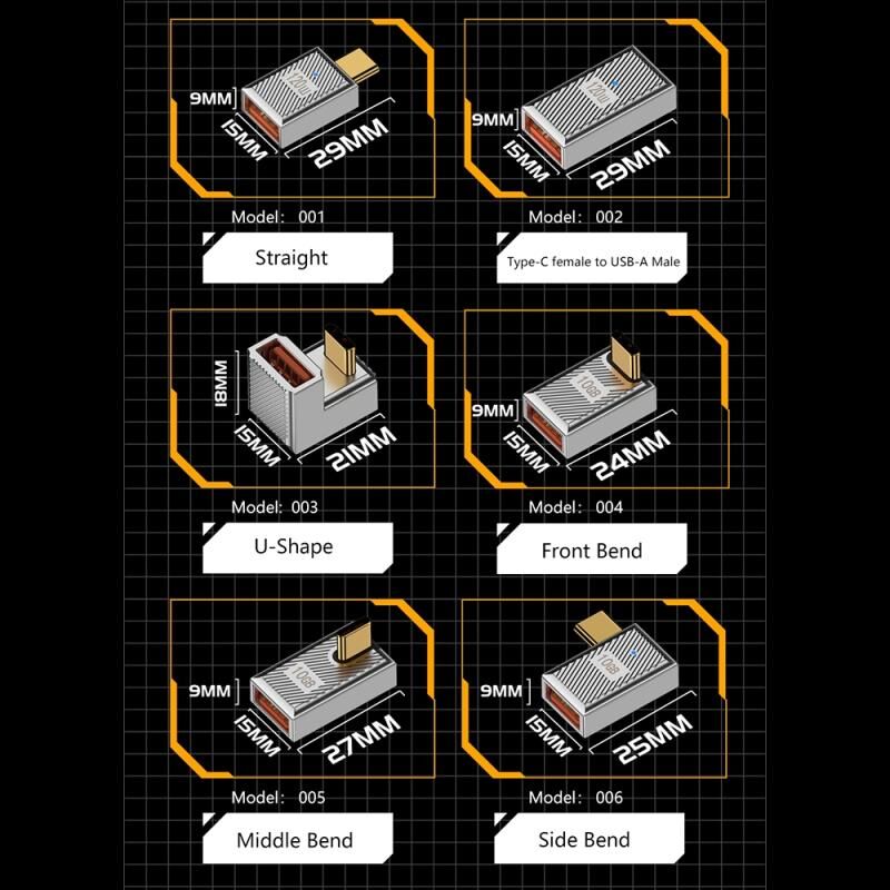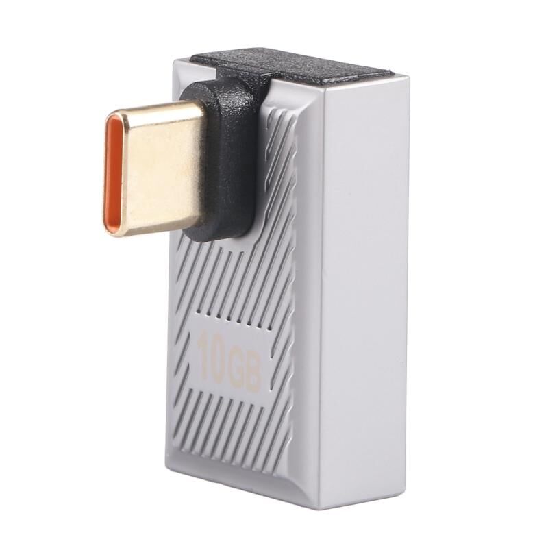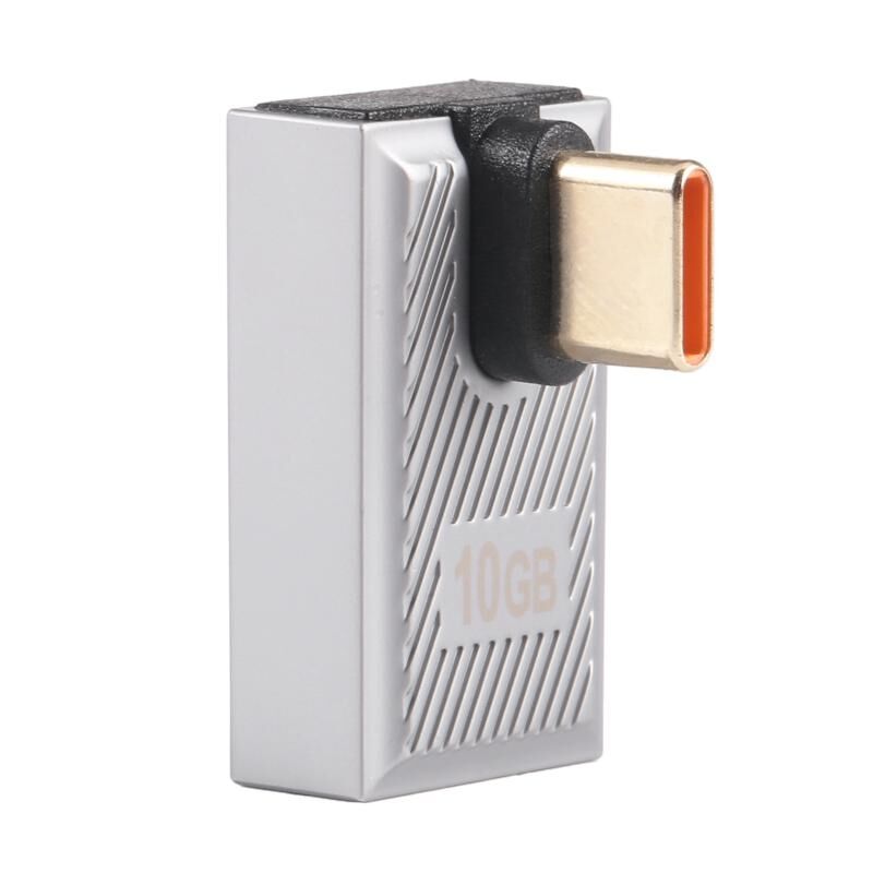 Αντάπτορας φόρτισης USB-C / Type-C αρσενικό σε USB θηλυκό 10 Gbps 90 μοιρών μεσαίας κάμψης (ασημί)