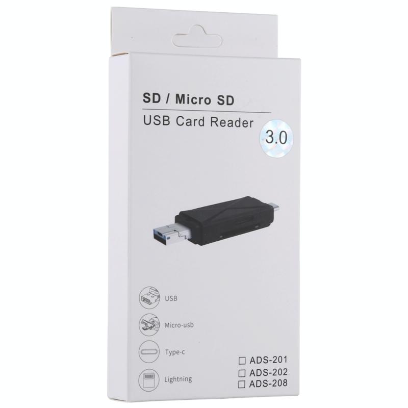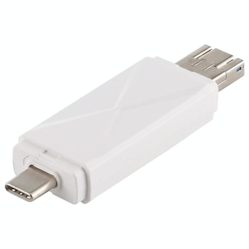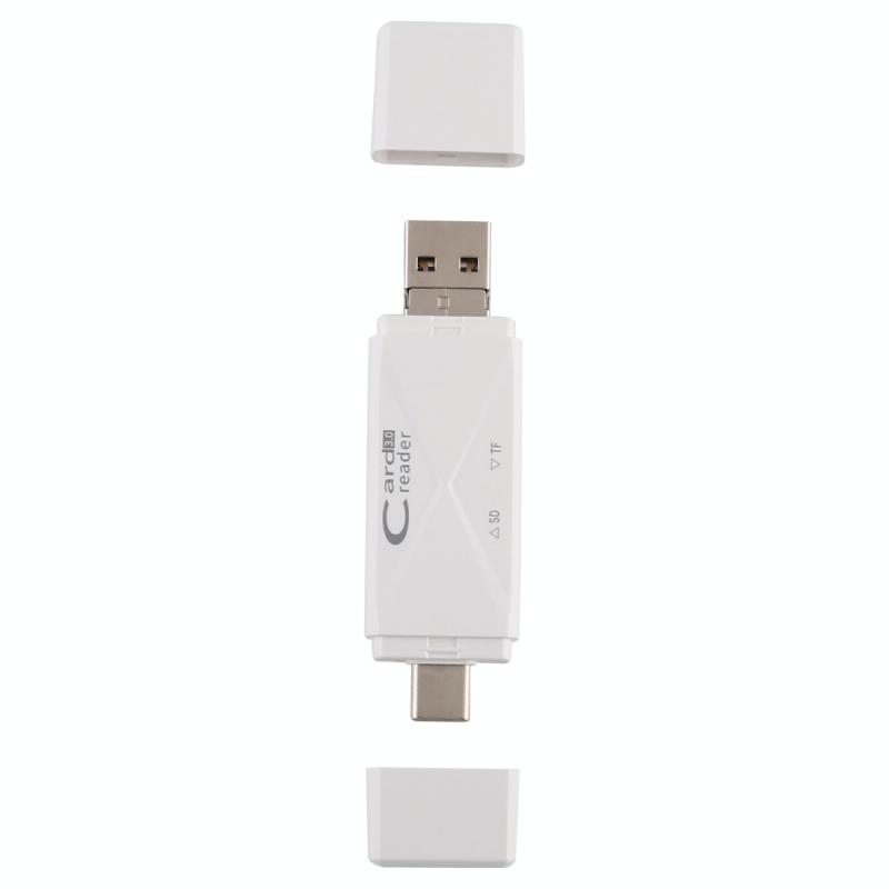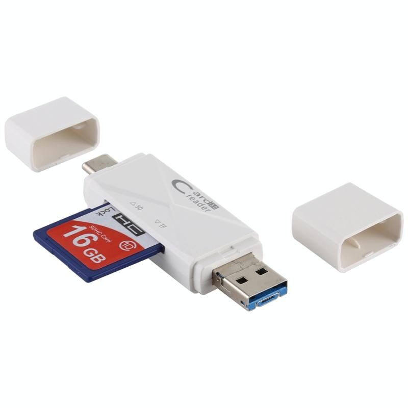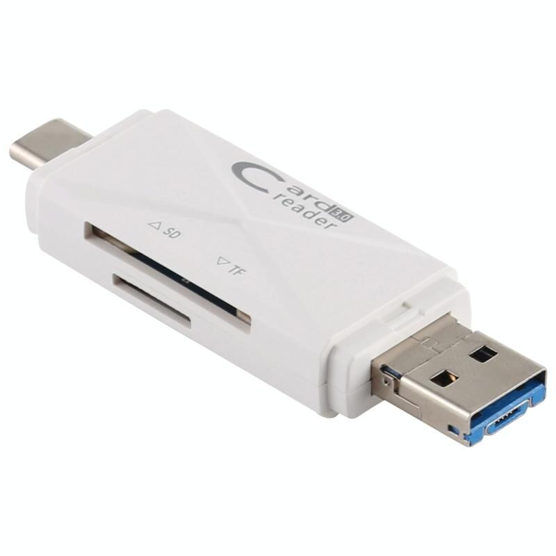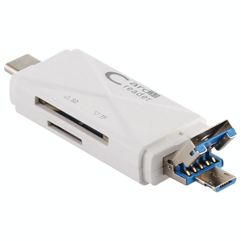 USB-C / Type-C + SD + TF + Micro USB to USB 3.0 Card Reader (White)