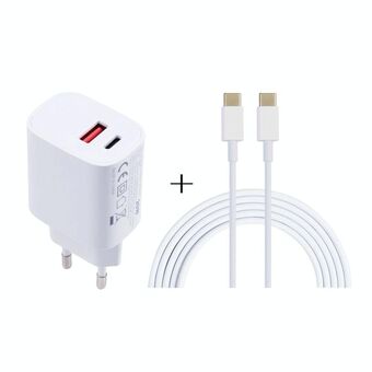 T087 20W USB-C / Type-C + USB Ports Charger with 100W Type-C to Type-C Fast Charging Cable 1m, EU Plug