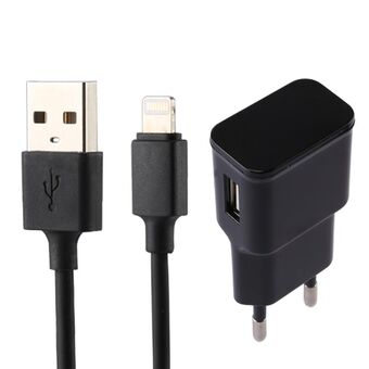 Φορτιστής USB 5V 2.1A για iPhone με Έξυπνη Αναγνώριση και Καλώδιο Φόρτισης USB σε 8-Pin, 1m, Ευρωπαϊκό Βύσμα (Μαύρο)