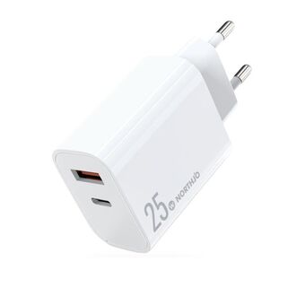 NORTHJO NOPD2502 PD 25W USB-C/Type-C + QC 3.0 USB Dual Ports Fast Charger, Plug Type:EU Plug(White) (NORTHJO)