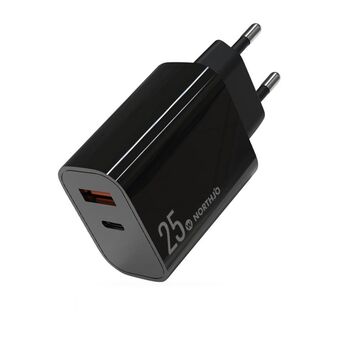 NORTHJO NOPD2502 PD 25W USB-C/Type-C + QC 3.0 USB Dual Ports Fast Charger, Plug Type:EU Plug(Black) (NORTHJO)