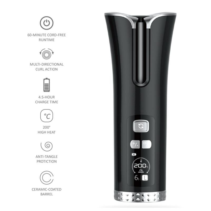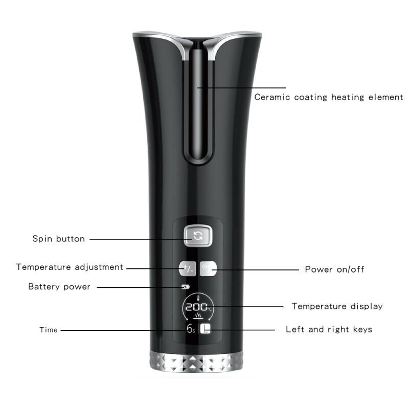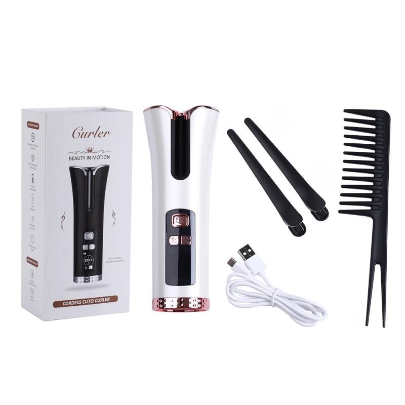 USB Charging Automatic Rotating Curling Iron Portable Wireless Travel Curling Iron(White)