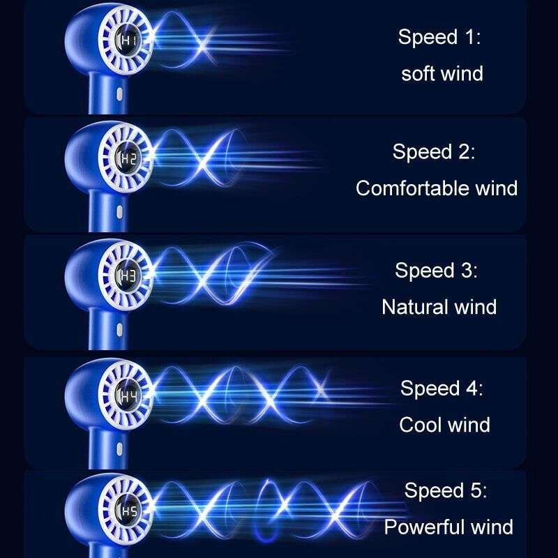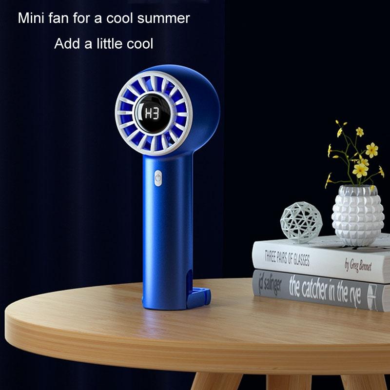 USB Charging Digital Display Handheld Turbo Fan Portable Foldable Buckle Small Fan(Blue)