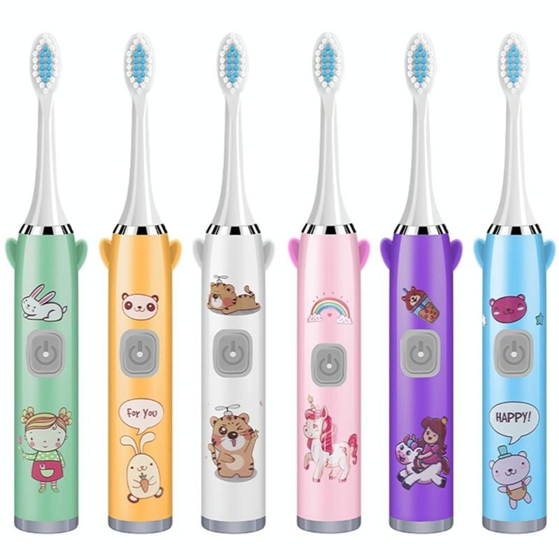 Ηλεκτρική οδοντόβουρτσα υπερήχων για παιδιά, αυτόματη, με φόρτιση USB, σχέδιο καρτούν, χρώμα: Ροζ με 3 κεφαλές.