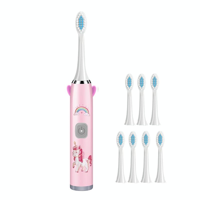USB Charging Fully Automatic Ultrasonic Cartoon Children Electric Toothbrush, Color: Pink with 8 Heads