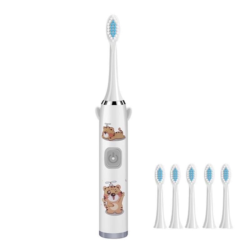 Ηλεκτρική οδοντόβουρτσα υπερήχων για παιδιά, πλήρως αυτόματη, με φόρτιση USB, σχέδιο καρτούν, χρώμα: Μπλε με 6 κεφαλές.