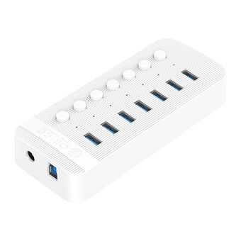 ORICO CT2U3-7AB-WH 7 In 1 Plastic Stripes Multi-Port USB HUB with Individual Switches, EU Plug(White) (ORICO)
