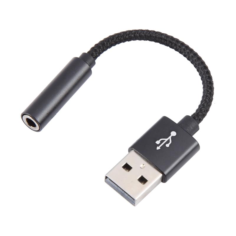 USB Male to 3.5mm Female Weave Texture Audio Adapter(Black)