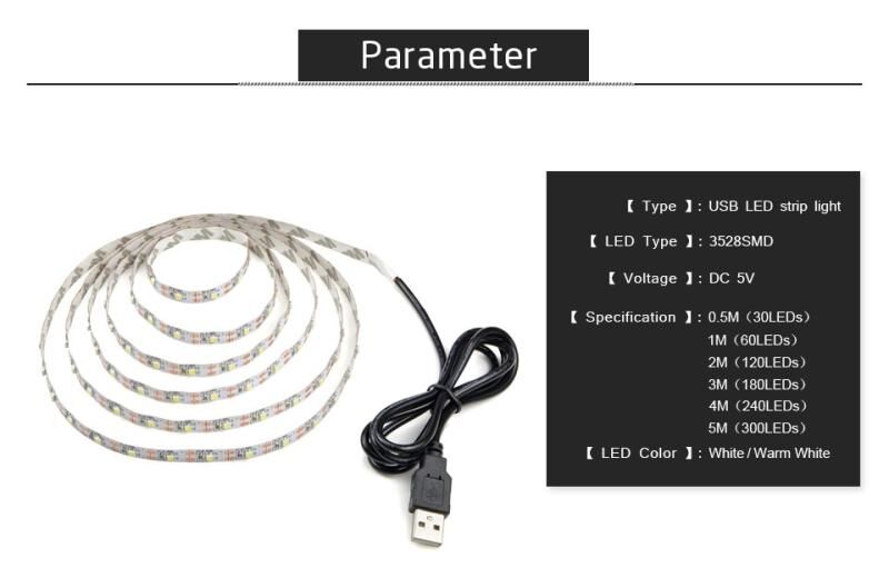 USB Power SMD 2835 Epoxy LED Strip Light Christmas Desk Decor Lamp for TV Background Lighting, Length:1m(White Light)