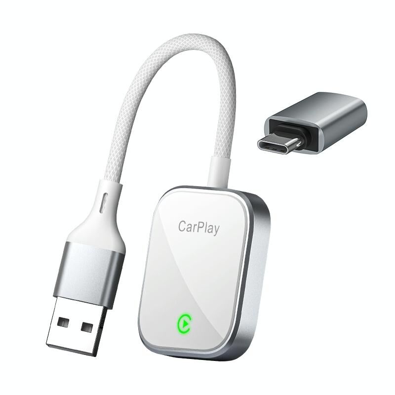USB, USB-C / Type-C Dual Interface Wired to Wireless Car CarPlay Box Adapter for iPhone(White)