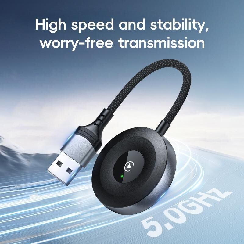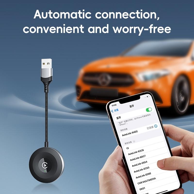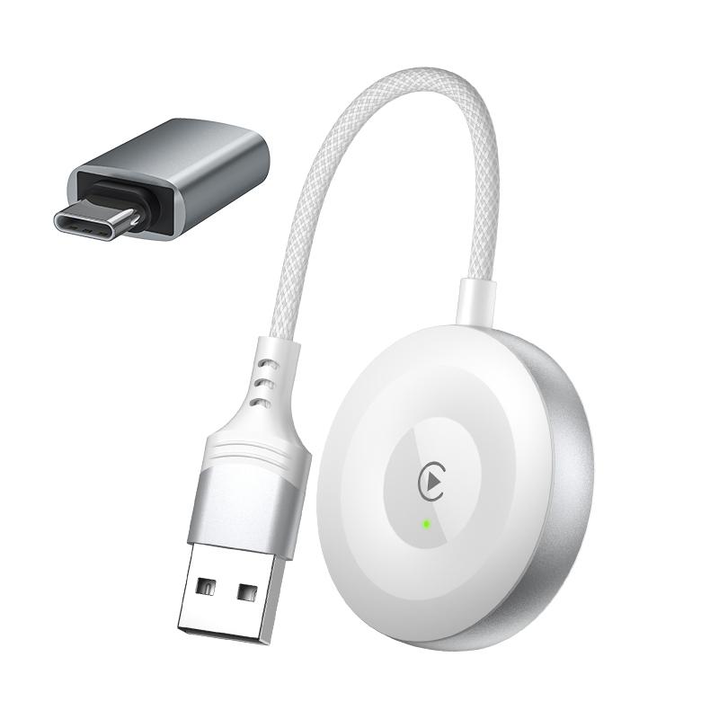 USB, USB-C / Type-C Wired to Wireless Car CarPlay Box Adapter for iPhone(White)