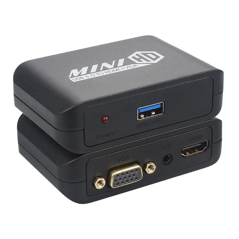 USB to HDMI + VGA high-definition display adapter can obtain high-definition audio and video images through the computers USB interface. It can be connected to a high-definition TV, monitor or projector device with HDMI and VGA interfaces, which can display at the same time, which is convenient for the computer,external audio and video display problems.