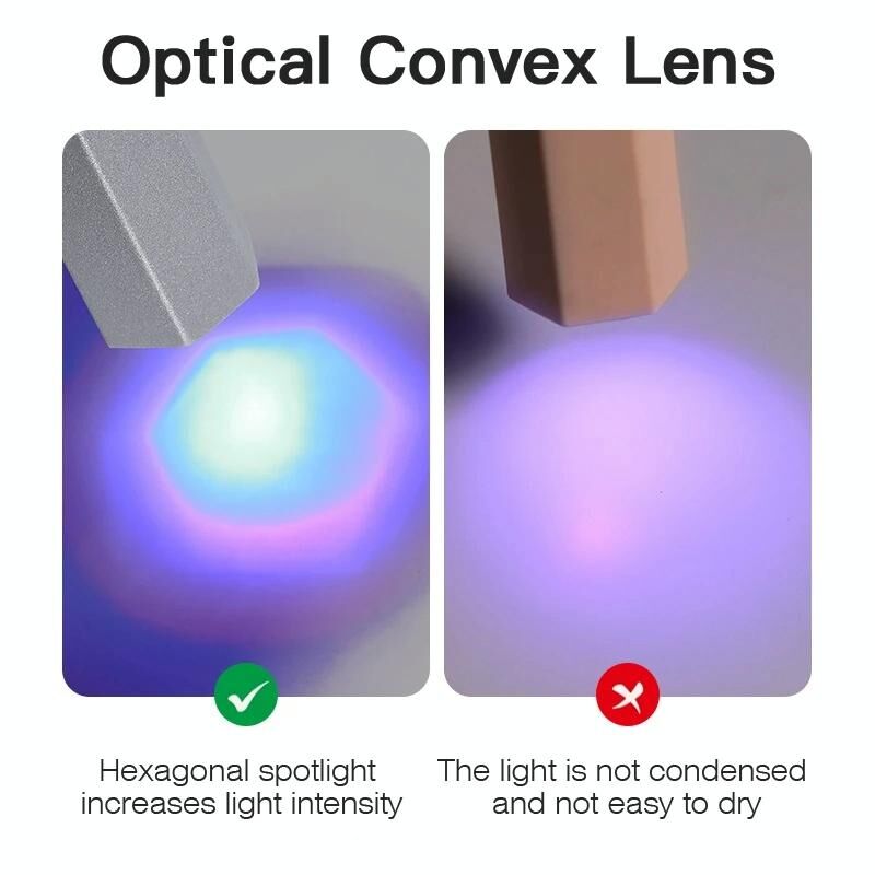 4. Λαμπάκια LED υψηλής ισχύος + κυρτός φακός σε σχήμα ηλίανθου, μεγεθύνει τον ομοιόμορφο φωτισμό της επιφάνειας του νυχιού
