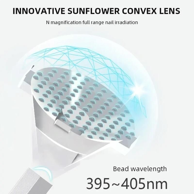 4. Λαμπάκια LED υψηλής ισχύος + κυρτός φακός σε σχήμα ηλίανθου, μεγεθύνει τον ομοιόμορφο φωτισμό της επιφάνειας του νυχιού
