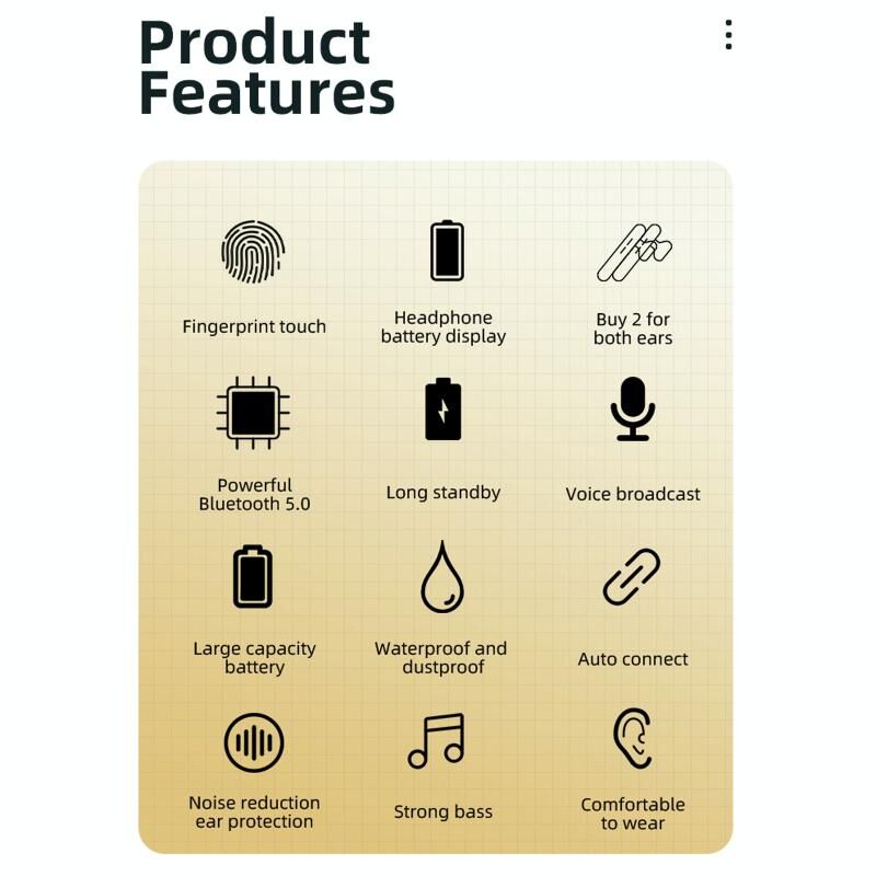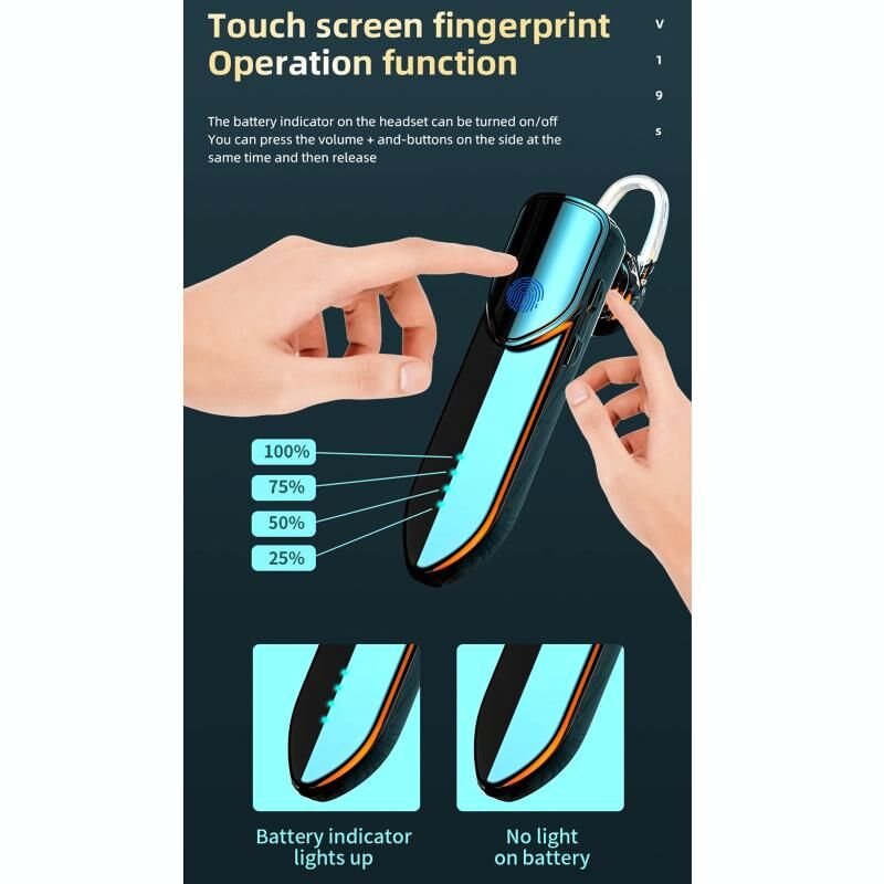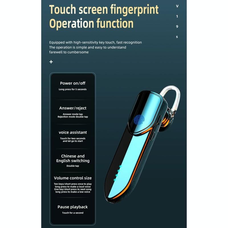Ακουστικά Bluetooth V19S 5.0 με έλεγχο δακτυλικού αποτυπώματος, σε επαγγελματικό στυλ (Μαύρο)