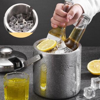 Κουβάς πάγου από ανοξείδωτο ατσάλι 304, διπλής στρώσης, κοίλος, για μπαρ, μπύρα, κρασί, με λαβίδα πάγου, χωρητικότητα: 1,3L.