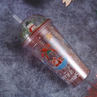 Πλαστικό ποτήρι φορητό με σχέδιο Άγιου Βασίλη, χωρητικότητας 500ml, διπλό, για χυμούς και μικροτοπία (Στυλ 4)