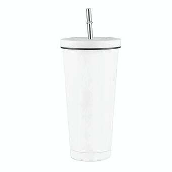 JUNSUNMAY 500ml Θερμός Νερού από Ανοξείδωτο Ατσάλι 304, Κούπα Καφέ με Καπάκι και Καλαμάκι (Λευκό) (JUNSUNMAY)