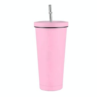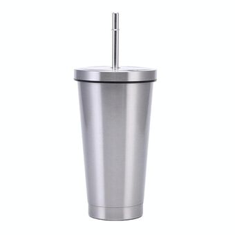 JUNSUNMAY 500ml Θερμός Νερού από Ανοξείδωτο Ατσάλι 304, Κούπα Καφέ με Καπάκι και Καλαμάκι (Χρώμα Ατσαλιού) (JUNSUNMAY)