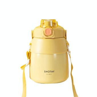 SHOTAY ST-8063 Παιδικό Παγούρι με Χοντρή Κοιλιά, Ανοξείδωτο Θερμός, Χαριτωμένο Παγούρι με Λουρί (Γκρι) (SHOTAY)