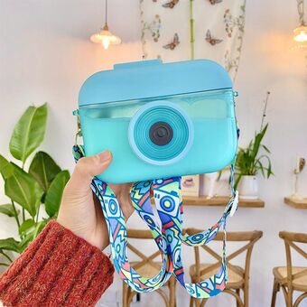 Camera Plastic Cup Children Straw Juice Cup Travel Leisure Water Cup(Blue)