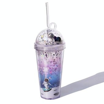 420ml Space Straw Cup Plastic Double Layer Water Cup