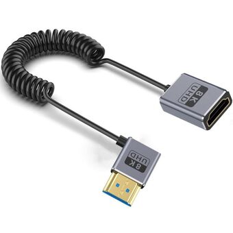 0.7m Coiled Coaxial 8K 48Gbps HDMI 2.1 Cable, Port:Male to Female Up Elbow