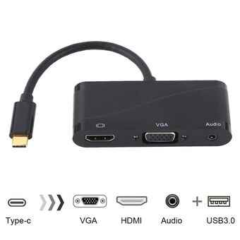 USB 2.0 + Audio Port + VGA + HDMI to USB-C / Type-C HUB Adapter (Black)