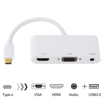 USB 2.0 + Audio Port + VGA + HDMI to USB-C / Type-C HUB Adapter (White)