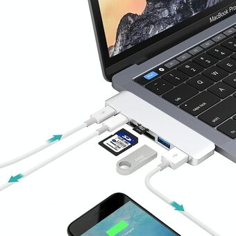 6 in 1 Multi-function Aluminium Alloy 5Gbps Transfer Rate Dual USB-C / Type-C HUB Adapter with 2 USB 3.0 Ports & 2 USB-C / Type-C Ports & SD Card Slot & TF Card Slot for Macbook 2015 / 2016 / 2017(Silver)