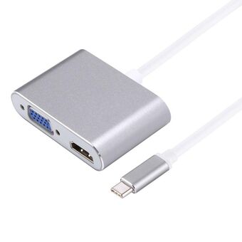 Διαχωριστής/Προσαρμογέας Hub 2 σε 1, θηλυκό VGA & HDMI σε αρσενικό USB-C / Type-C (Γκρι)