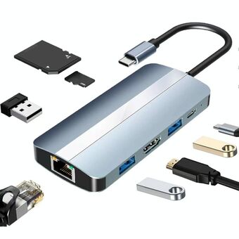 BYL-2205 Προσαρμογέας πολυλειτουργικού σταθμού σύνδεσης HUB 8 σε 1 USB-C / Type-C σε USB