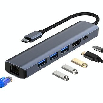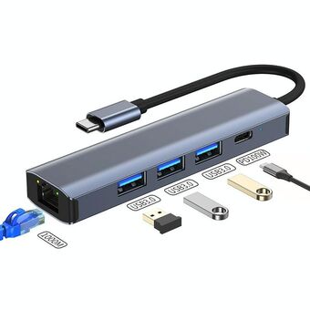 BYL-2302 5 σε 1 USB-C / Τύπος-C σε USB Πολυλειτουργικός σταθμός σύνδεσης HUB Adapter με θύρα δικτύου 1000M