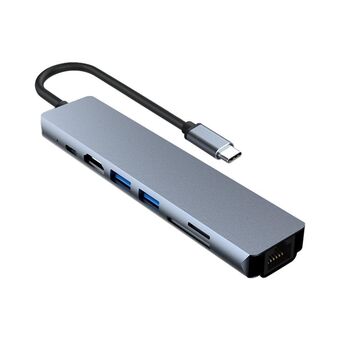 7 σε 1 RJ45 + SD/TF + USB 3.0 x 2 + HDMI + PD σε USB-C / Type-C HUB Adapter